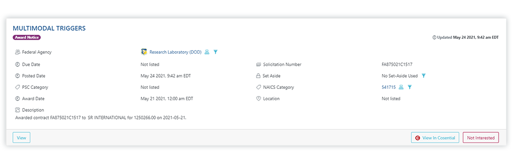 This new platform combines cutting-edge CRM capabilities with market intelligence and proposal generation functionality to enable GovCons to: